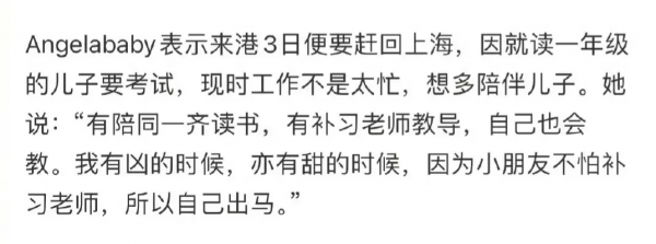 杨颖如今工作不太忙,她想多陪伴儿子。她还表示:有陪孩子一起读书,既有补习老师教导,自己也会亲自教。自己有时严厉,有时温柔,因为小朋友不怕补习老师,所以自己亲自出马。