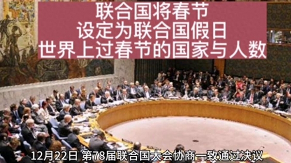 最近,一个应景的好消息疯传网络:12月22日,第78届联合国大会协商一致通过决议,将春节(农历新年)确定为联合国假日。