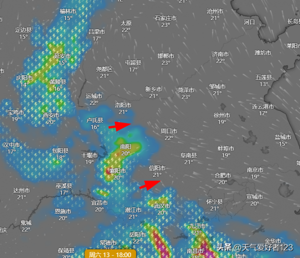 初步预计,降水云团会在13日傍晚(下午)到夜间前后,从南面(湖北)和西面(陕西)进入河南,河南降水就此展开。