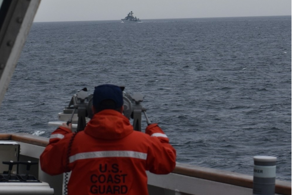 (美国海岸警卫队盯防中俄海军舰队)