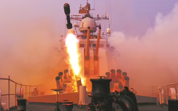 (资料图:解放军战舰发射火箭深弹)