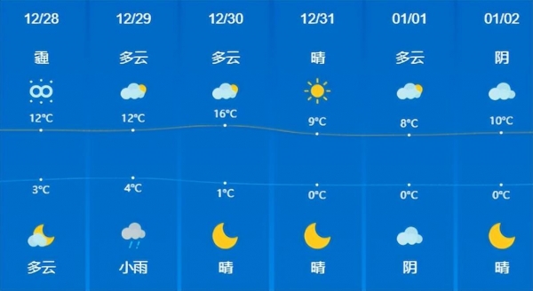 回到天气方面,昨天28号,全省大部分地区的天气都是晴天和多云,雨水较少。如上图城市预报,多地最高温度在7℃~13℃左右,最低温度在-2℃~5℃左右。