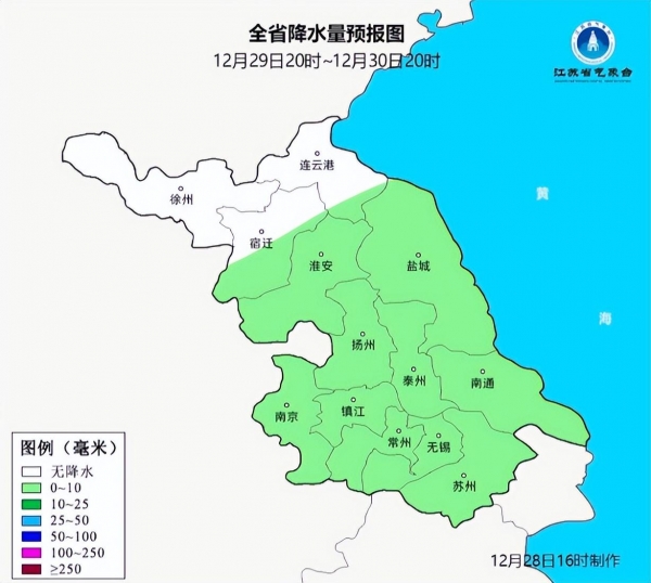 今天29号,全省自北向南将会迎来一轮降水过程,而且早上还会受到大雾天气的影响。根据预报,全省的天气基本上是多云转阴天,并伴有降雨。像南京、苏州、镇江、南通、扬州、盐城、徐州、淮安、常州、泰州、宿迁等地将会受到小雨的影响。大部分最高温度在6℃~13℃左右,最低温度在0℃~5℃左右。