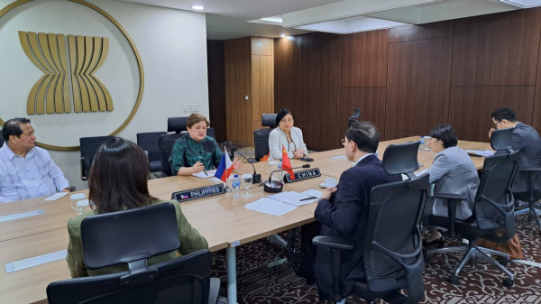 (在东盟的框架下,双方副外长坐在一起磋商)