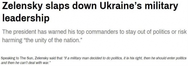 还有报道称,泽连斯基曾警告扎卢日内不要参与政治,称军方高官"表现得像政治家"会破坏国家团结,将是一个"巨大的错误"。