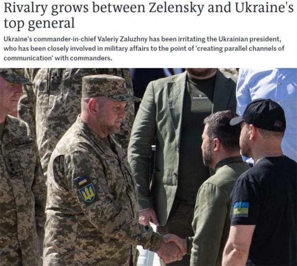 关于"乌克兰总统泽连斯基与乌军总司令扎卢日内不和"的消息,早已经被传得沸沸扬扬、人尽皆知。其中虽有几分夸大,但大部分也确实是事实。在毫无军事指挥素养的泽连斯基的固执要求下,乌军先是在巴赫穆特地区元气大伤,然后又在明显实力不济的情况下强行发动大反攻,进一步"帮"着俄军给乌克兰放血。而扎卢日内先后提出的"弃守巴赫穆特"和"推迟发动反攻"的建议,均被泽连斯基所否定。也难怪不少人以事后诸葛亮的角度来看,认为扎卢日内比泽连斯基更适合领导当下的乌克兰。