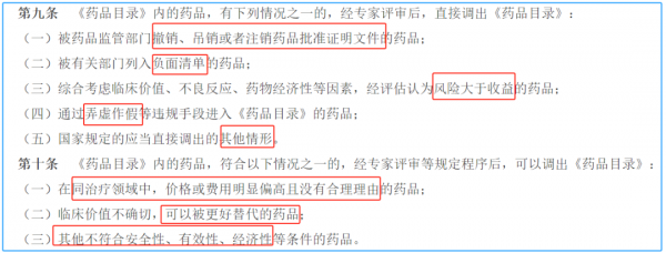 第九条规定:有5种情况之一,药物会被调出医保药品目录: