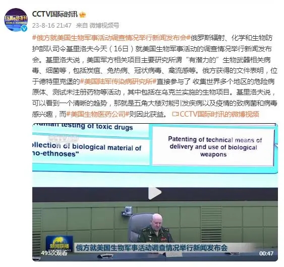基里洛夫说,美国今年7月成立了一个名为大流行准备和应对政策办公室(P3O)的新机构,是"为新的大流行做准备,并在全球范围内建立对生物环境的控制"。