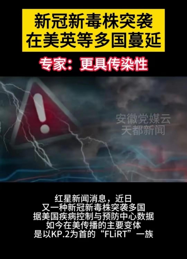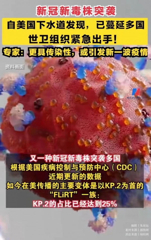 近日,又一种新的新冠毒株KP.2被发现,据说,最初是在美国的下水道中发现的,被发现时,已经在美国速度蔓延,甚至已经侵染到了周边的很多国家。