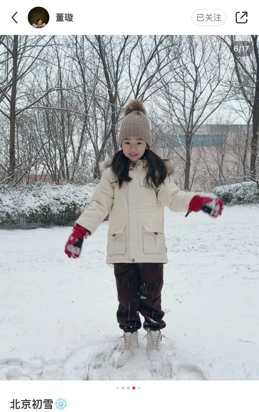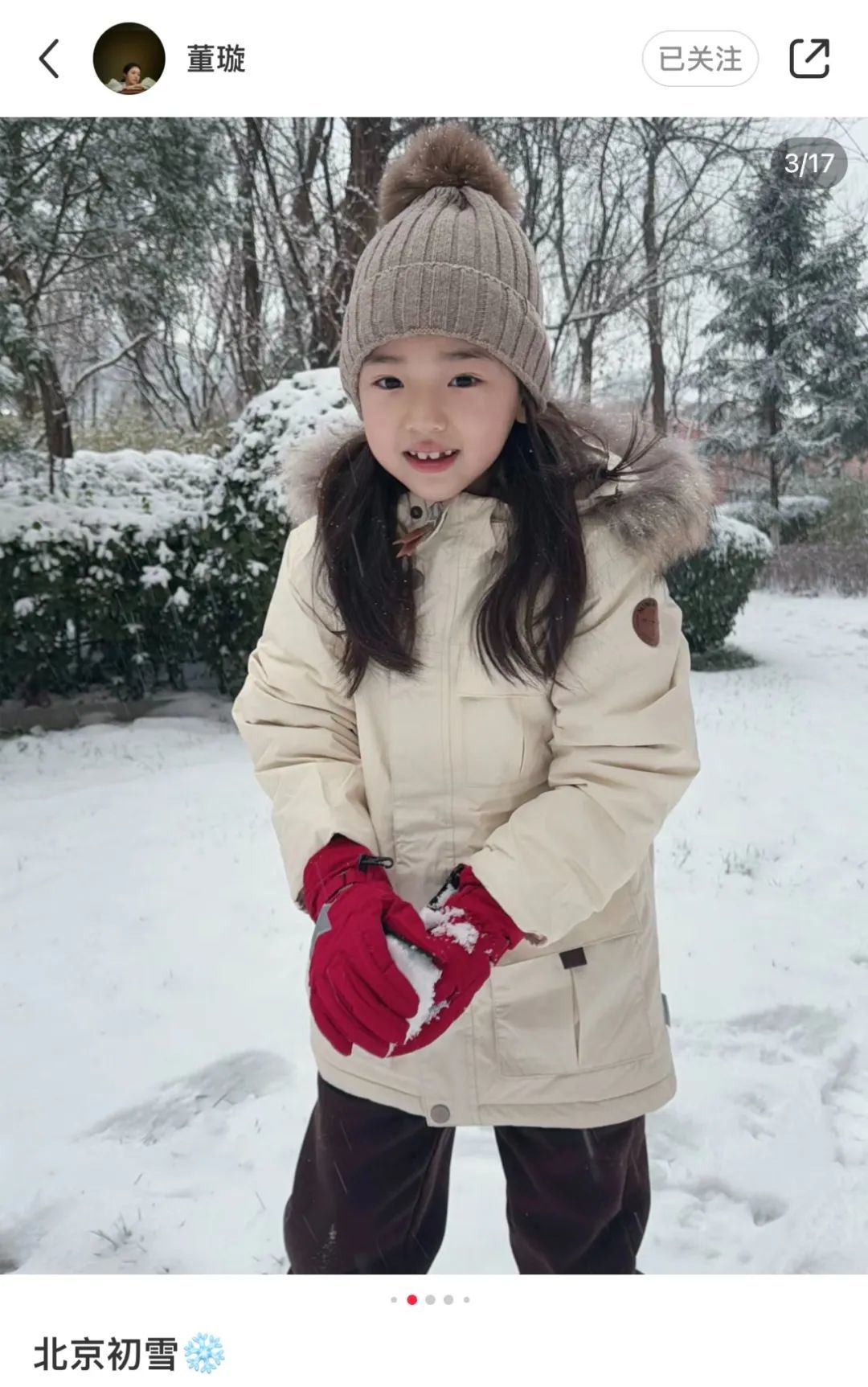 前两天,董璇晒出了女儿小酒窝在雪地里的照片,