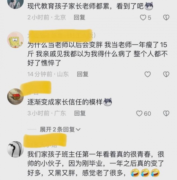 甚至有网友说,你这当一年的老师,直接由小奶狗变成了大母狗。实在不行,咱换份工作吧,实在不忍心看到你这副油腻的样子。
