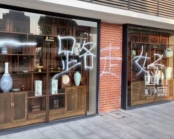 9月25日,据四川观察报道,近日,上海一民警接警称,辖区内一饭店大堂被人恶意摆放花圈和遗像,沿街玻璃被喷上 "一路走好"字样,现场满地纸钱。