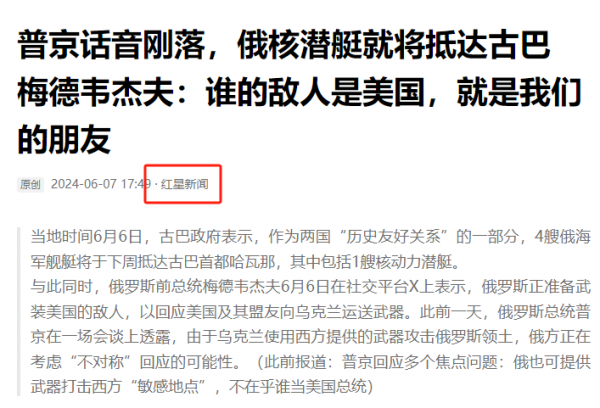 红星新闻:普京话音刚落,俄核潜艇就将抵达古巴 梅德韦杰夫:谁的敌人是美国,就是我们的朋友