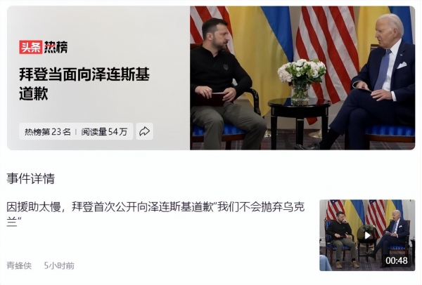 青蜂侠:因援助太慢,拜登首次公开向泽连斯基道歉"我们不会抛弃乌克兰"