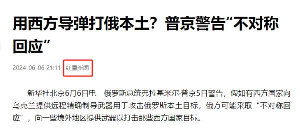 红星新闻:用西方导弹打俄本土?普京警告"不对称回应"
