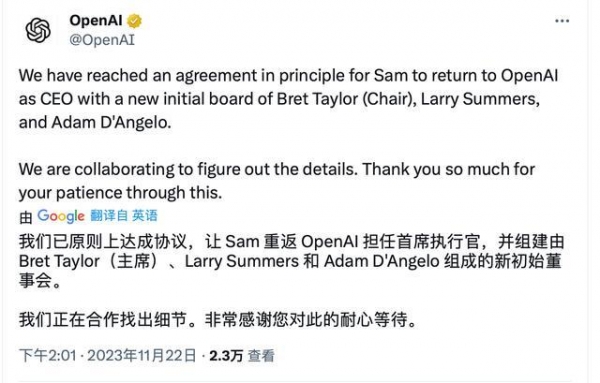 热闻丨奥特曼强势回归,OpenAI"宫斗"大戏暂时落幕