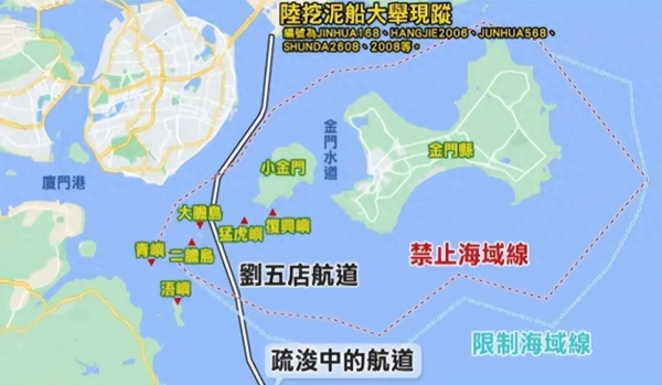 对于大陆挖泥船目前仍在金门附近海域,进行疏浚刘五店航道。前民进党"立委"郭正亮18日表示,刘五店航道疏浚早晚会完成,厦门港是国际港,到时候就会有很多各国的货柜轮进出。且都会穿过金门的"禁限制水域",请问台海巡可以挡吗?如果不让进,大陆海警船就会介入,台海巡又拼不过人家。如果军舰通过呢?那台军怎么办?岛上的驻军怎么办?如果大陆海警临检金门驻军的运补船呢?