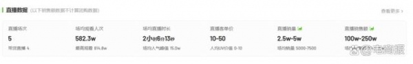 飞瓜数据显示,黄老师近30天内共开播5场,场均观看人次582.3万,最高观看人次814.8万,直播销售额100万-250万。