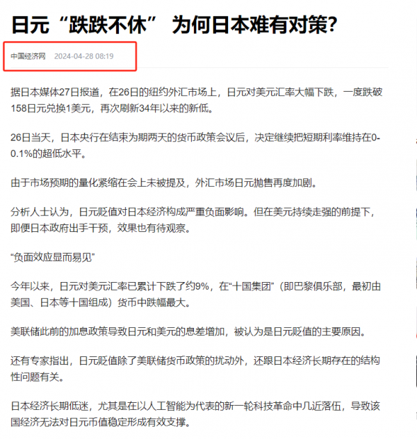 信源:中国经济网--日元"跌跌不休" 为何日本难有对策?