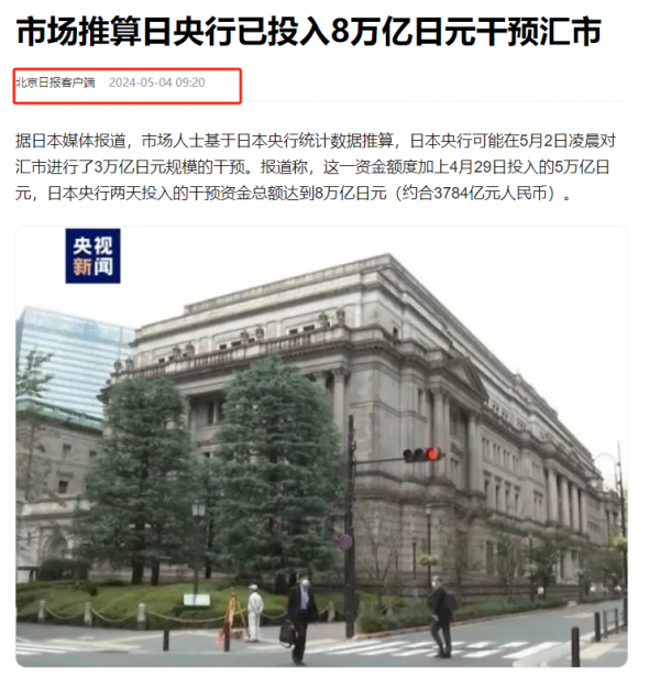 信源:北京日报客户端--市场推算日央行已投入8万亿日元干预汇市