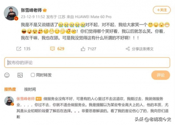 面对日益扩大的争议,张雪峰通过微博发表了道歉声明,承认自己的言论可能误导了大家。
