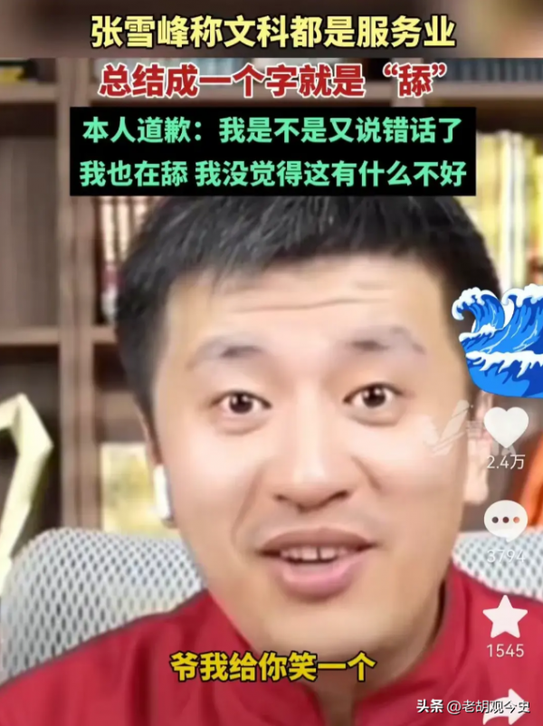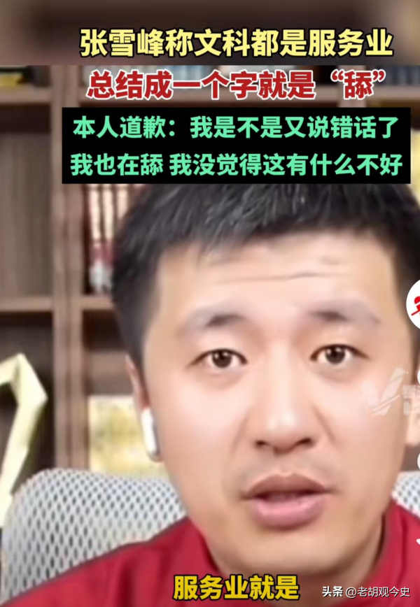 在直播中,张雪峰提到所有的文科专业本质上都可以归纳为服务业,总结起来就是"舔"。