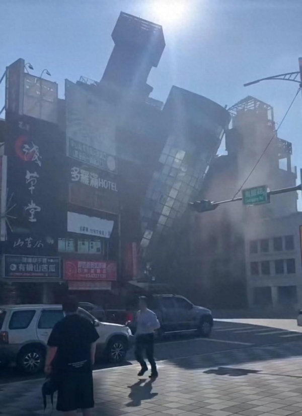 4月3日上午,台湾花莲海域发生7.3级地震,现场尘土飞扬,一片狼藉,建筑损毁,震耳欲聋。