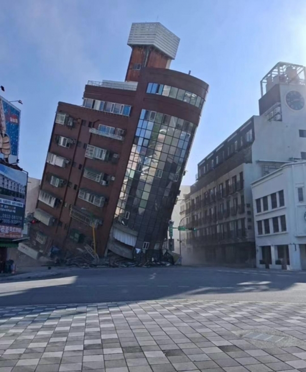 地震导致原有的整座建筑几乎"连根拔起",许多建筑也受到了严重的打击,这场突发的7.3级地震让人感到非常恐慌,有位台湾的网友表示"当时我还穿着内裤就跑下楼了"。