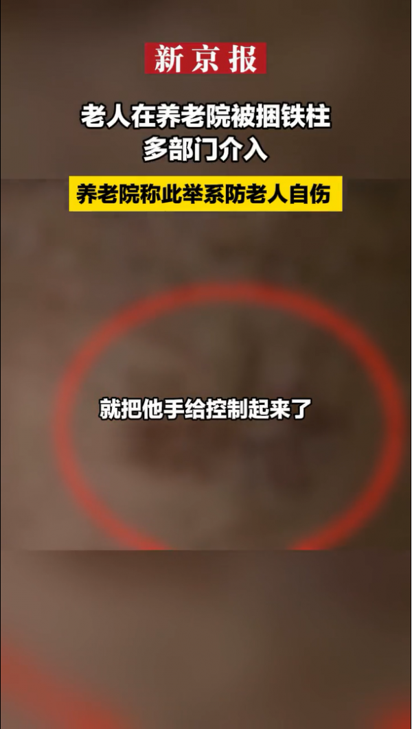 视频中呈现的是一幅让人痛心疾首的画面:一位白发苍苍的老人,无助地坐在轮椅上,双手背靠,举起来,紧紧地绑在铁柱子上,腰部也被固定在轮椅上,无法动弹。这本是电影里面的一幕,却出现在一家充满温馨与关爱的养老院,养老院变成了老人的囚笼与噩梦,令人不禁要问,这究竟是人性的沦丧,还是道德的缺失?