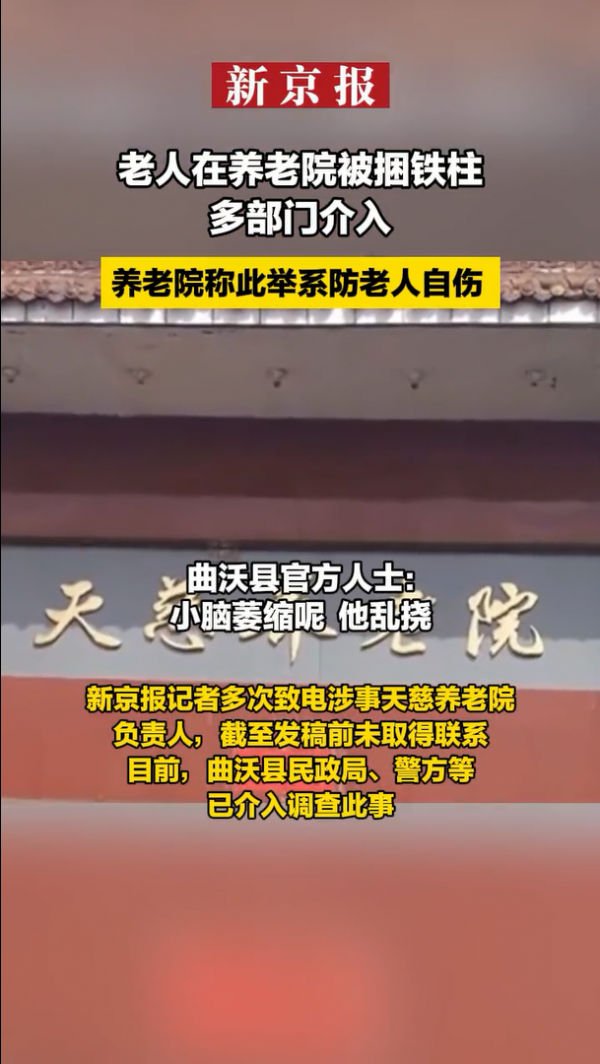 近日,一段关于山西曲沃县养老院的视频在网上引起了强烈反响。视频显示,一名六旬老人被捆绑在铁柱上,情况令人揪心。上传视频的女子表示,她的父亲在养老院疑似受到虐待,并因脑出血住院。