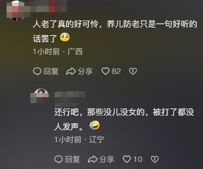 相比之下,那些没有子女的人,被欺负了都没有人替他们说话。