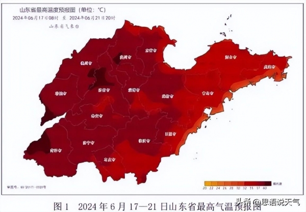 山东省气象台于6月17日06时00分继续发布高温橙色预警:受大陆暖高压脊影响,预计17-21日我省大部地区无明显降雨,鲁西北、鲁中和鲁南地区将持续出现高温天气,高温气象风险等级高,其中18号~21号,中西部地区最高气温37℃~39°C,局部可达40°C。气温较高,请加强防范。