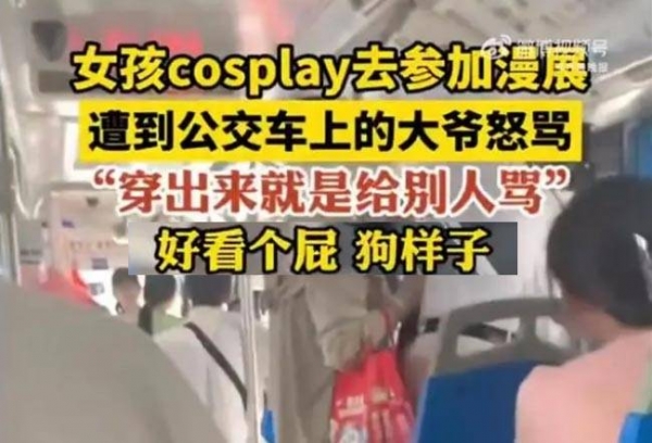 据椒点视频微博报道,7月23日,江苏扬州,女孩cosplay坐公交去参加漫展,被车上大爷谩骂一路:"你看你穿的什么衣服?""有父母生没父母养,没有父母教!"女孩反驳称妈妈夸自己好看,老人又骂道"好看个屁,狗样子",即使身边有人在拉扯劝阻,老人依旧继续骂。最终,在车上的乘客劝说下,两人才停止争吵。