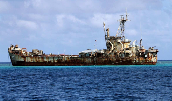 然而,在1999年的时候,菲律宾一艘破旧的坦克登陆舰57号舰驶往仁爱礁,并且声称"船底漏水,不得已在仁爱礁西北侧礁坪坐滩",当时中国就公开说明了,菲律宾必须拖走该船,并且仁爱礁是属于中国的领土,过后,菲律宾也答应了。
