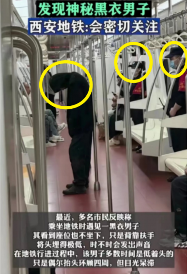 近日,网曝有多名网友拍到西安地铁惊现一名行为举止诡异的神秘黑衣男子。