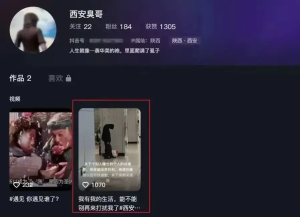 有网友找到了黑衣男子的社交账号,账号名字叫"西安臭哥"。
