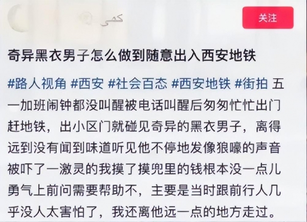 西安地铁表示:会密切关注黑衣男子。