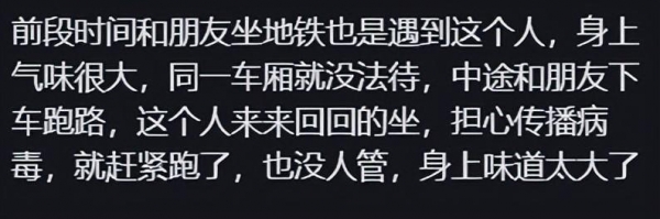 一名目击网友表示:从黑衣男子身边经过,能闻到一股恶臭,他衣服脏兮兮的,感觉好几天没有洗澡了。还能从他身上闻到一股尿骚味,估计是把尿尿在裤子里了,感觉这个黑衣男子很可怜。