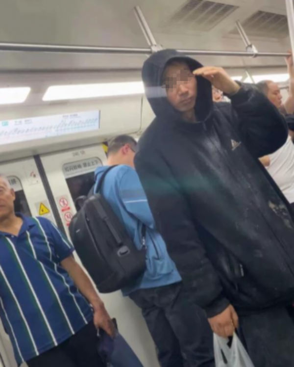 有坐在男子对面,胆大的网友拍到了男子真实的样貌,男子似乎也察觉到了对方在拍摄他,但他并没有做出阻止,或是辱骂对方的动作,只是举起手,示意了一下抱歉。