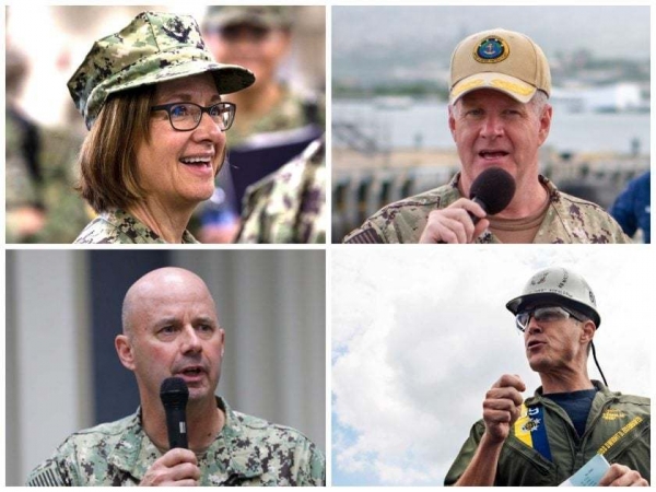 海军上将丽莎·弗兰凯蒂(左上)、太平洋舰队司令萨姆·帕帕罗(右上)、海军中将吉姆·基尔比(左下)和海军中将斯蒂芬·科勒 图源:USNI