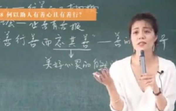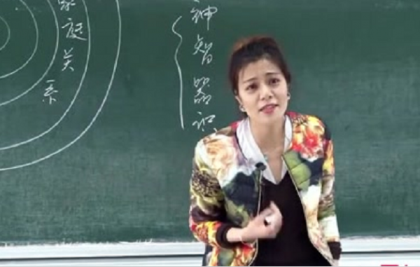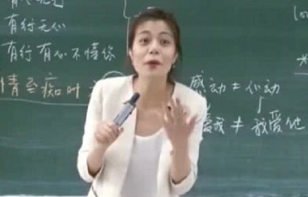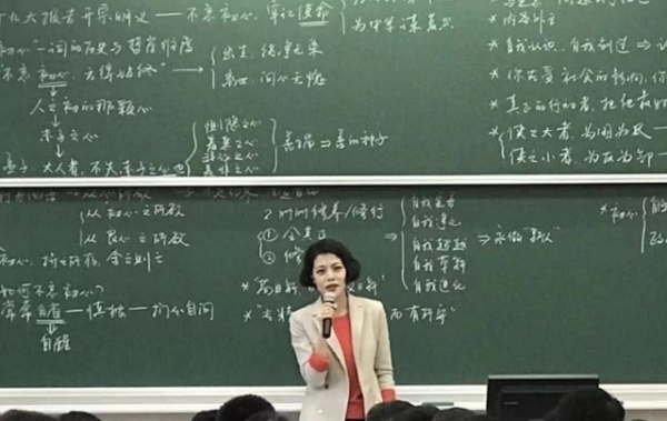 在这些视频中,我们不仅可以看到一位美丽大方的老师,而且从这个气质上可以看得出老师是智慧与气质并存的,还可以看到她讲课中的一种智慧,让人有强烈的求知欲。不仅如此,我们也没想到她在课堂上的笔迹如此洒脱豁达,古语字如其人,这四个字对她来说简直就是为她而定制的。在一些视频中,我们还看到她的教室里坐满了人,可以想象陈果老师的每节课都应该是座无虚席,所以我们可以看到学生们是很尊重和信任她的。