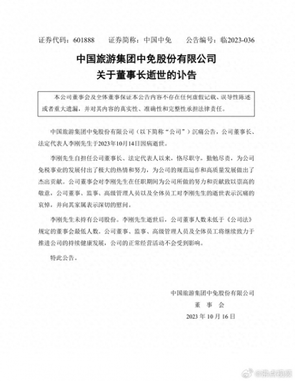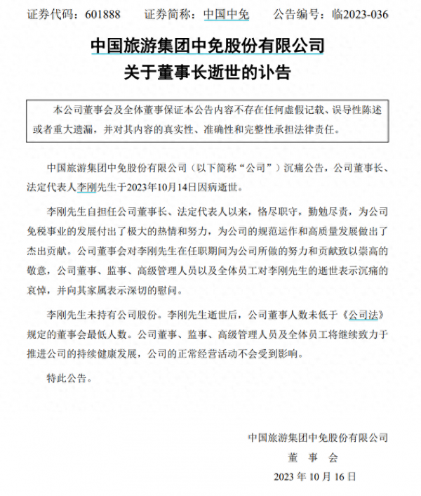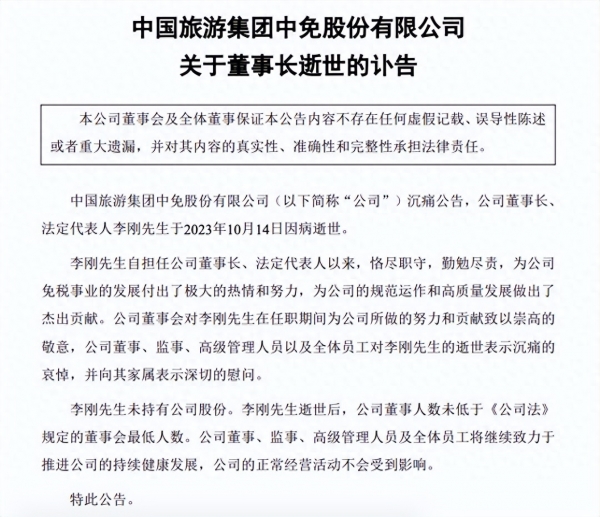中国中免将继续保持企业的创新力和领导力,为中国的旅游发展贡献自己的力量。我们相信,在新的领导下,中免定将迎来更加灿烂的明天!愿李刚先生安息,他的精神将会在中国中免的发展征程中永远熠熠生辉!