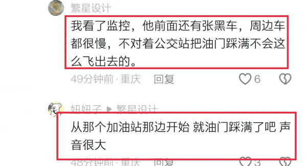 网友看了监控,这个车辆在旁边的加油站就开始使劲的踩油门,一直冲到公交站台旁边。