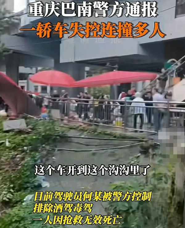 站台旁边就是一个小河沟,车辆撞到人群后,又直接开到了河沟里面。现场一片混乱,人群尖叫声不断,有的人不断的哭泣,迅速有人报了警。