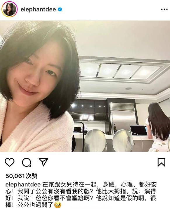 对此,小S发文称问过公公是否看过自己的床戏,公公竖起大拇指大夸"演得好",还表示不尴尬,知道是假的。