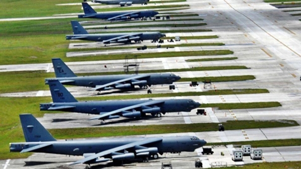 美国关岛安德森空军基地内的B-52轰炸机群