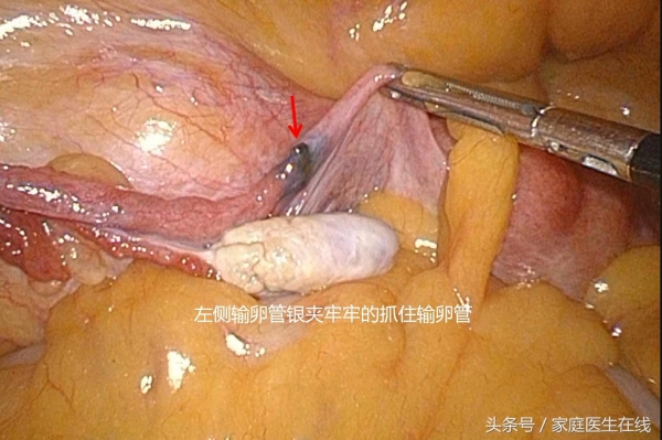 经过慎重讨论后,李英儒决定使用微创手术,在肚子上打三个小孔用腹腔镜进肚子里探查,这一探便发现,左侧正常状态的银夹还在坚守岗位--牢牢抓住输卵管,但右侧银夹却是擅自离了岗,不知去向。