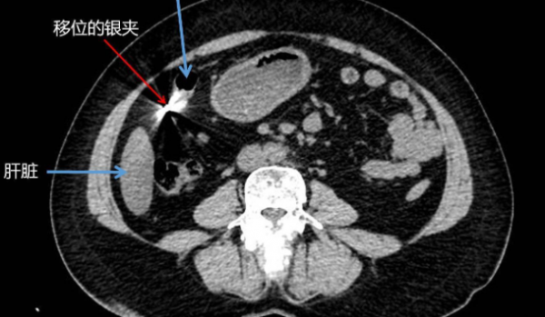 带着满心的疑惑与焦急,吴阿姨找到了我院胃肠疝和腹壁外科陈双教授求助。陈双教授再次查看CT片后,发现原本该待在右侧子宫底部输卵管的银夹子,居然一溜烟跑到了右上腹去了。怎么办呢?