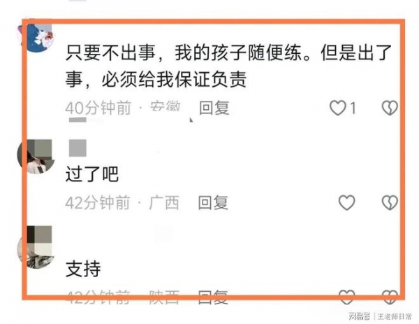 但是也有很多网友对这种行为表示理解,只要在安全的前提下进行训练,可以让孩子更快成长,是可以接受的。