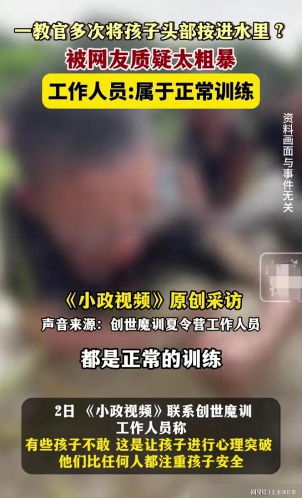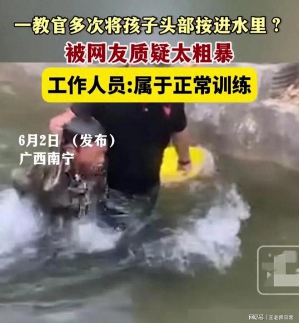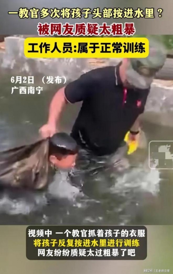 近期,广西南宁一夏令营惊现硬核军训,孩子被教练提着衣服按在水里训练,引发广泛关注。